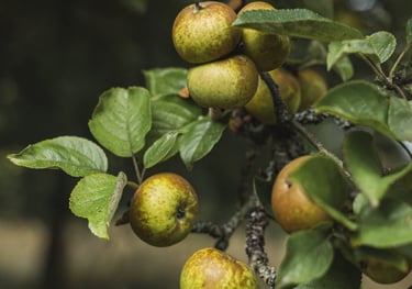 Des bonnes pommes non traitées et ramassées à la main pour vous offrir jus, cidre, vinaigre, eau de vie ...